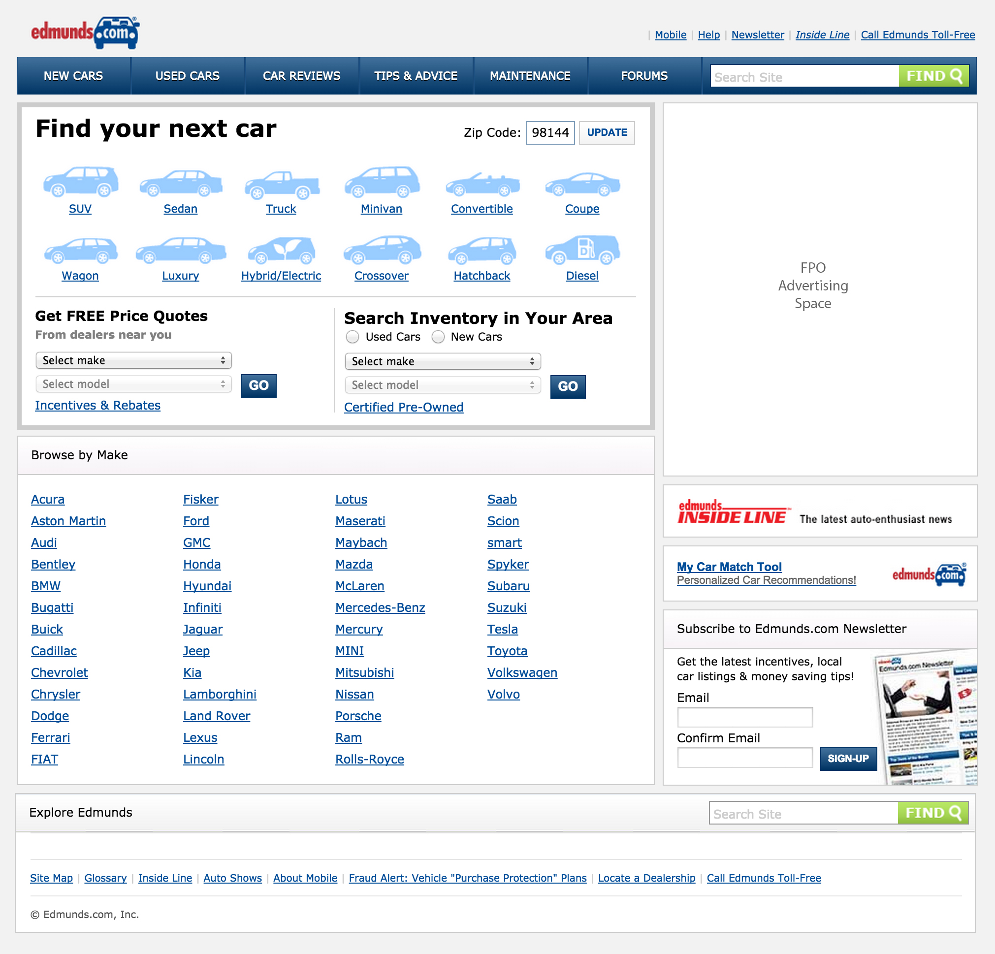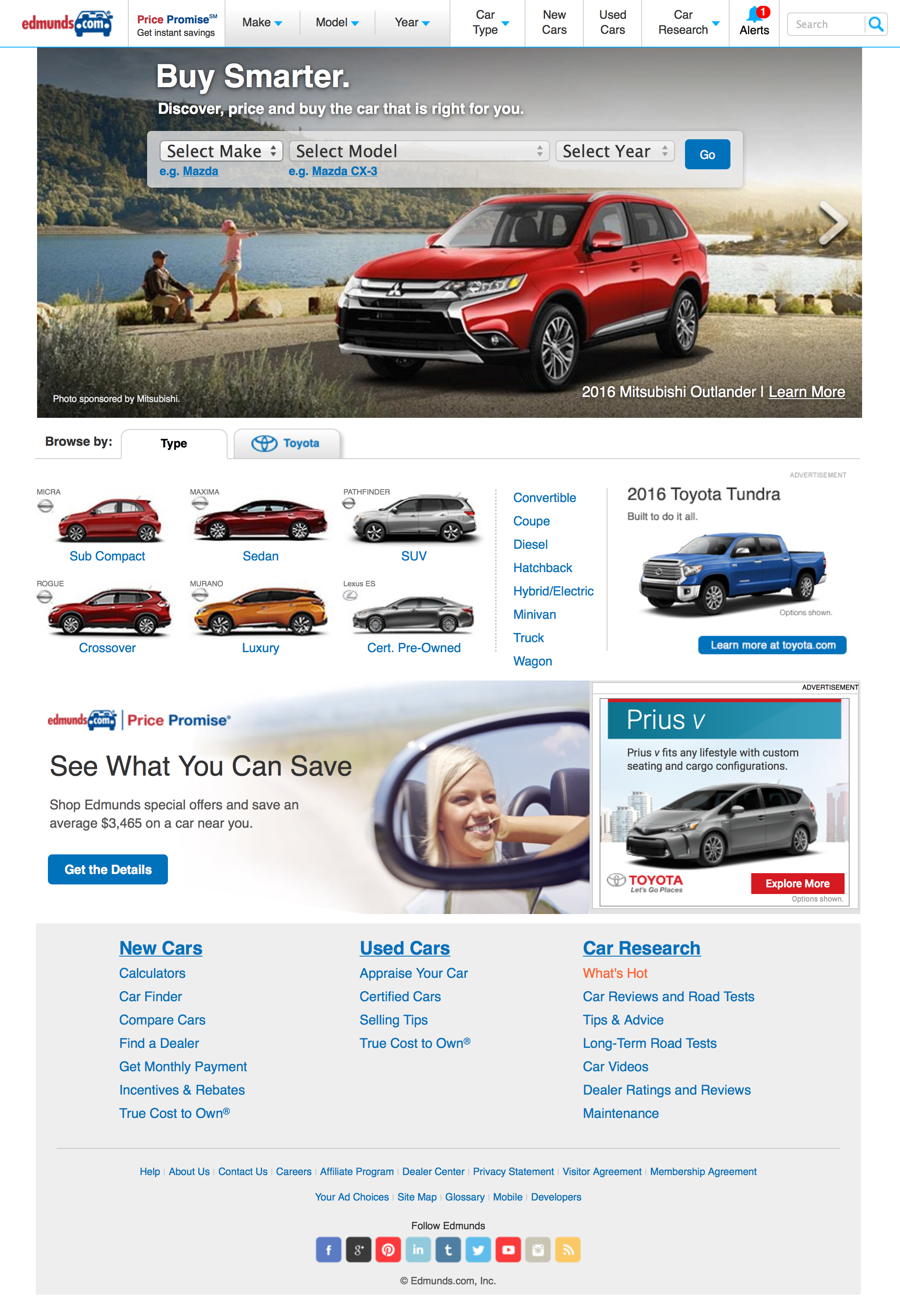 In my 6 years as Vice President of User Experience Design & Research, and then later as Vice President of Consumer Strategy, I led hundreds of projects on the Edmunds wired and mobile website. One of our consistent areas of focus and optimization is the Home Page.